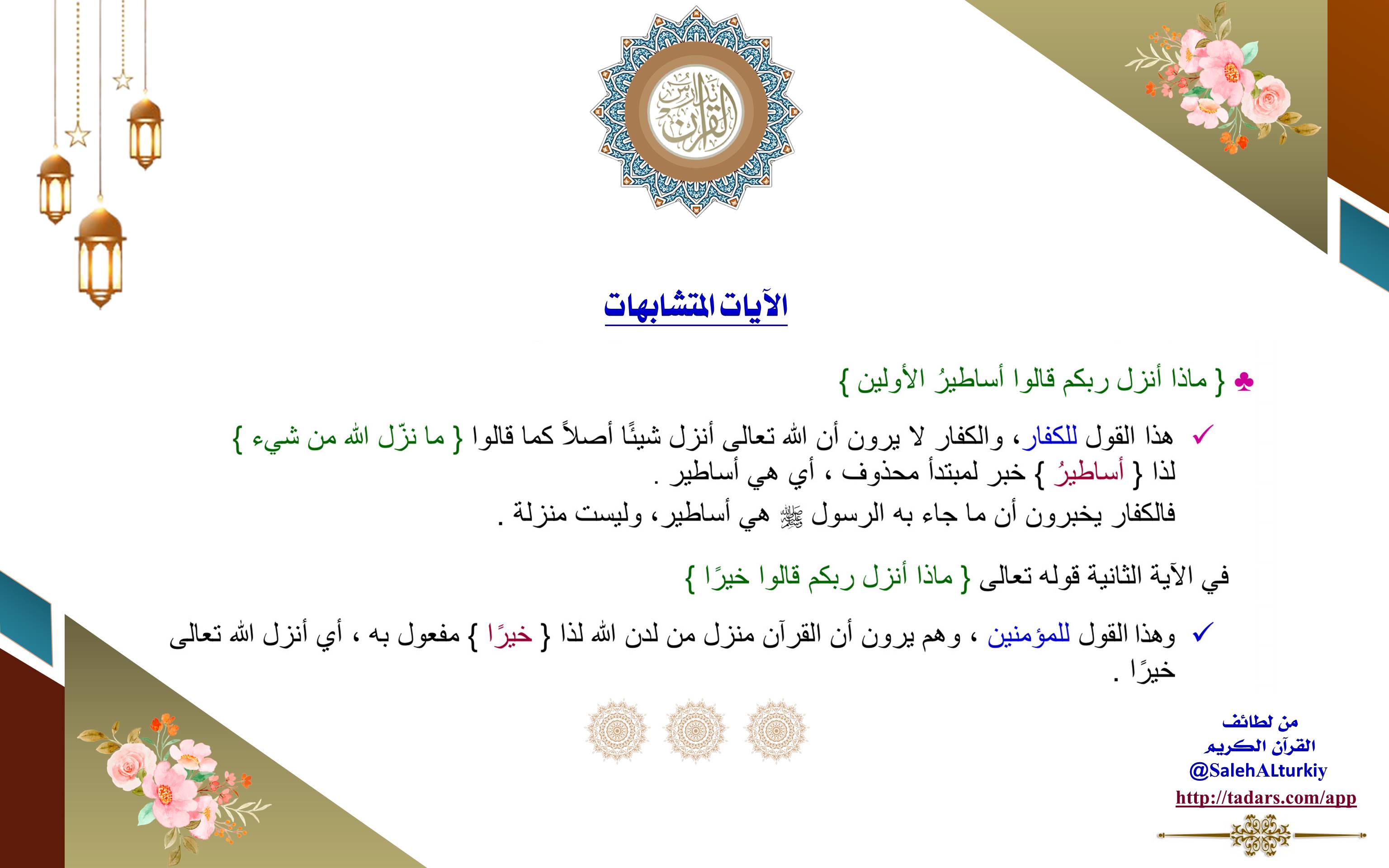 ﴿مَّاذَا أَنزَلَ رَبُّكُمْ قَالُوا أَسَاطِيرُ الْأَوَّلِينَ﴾