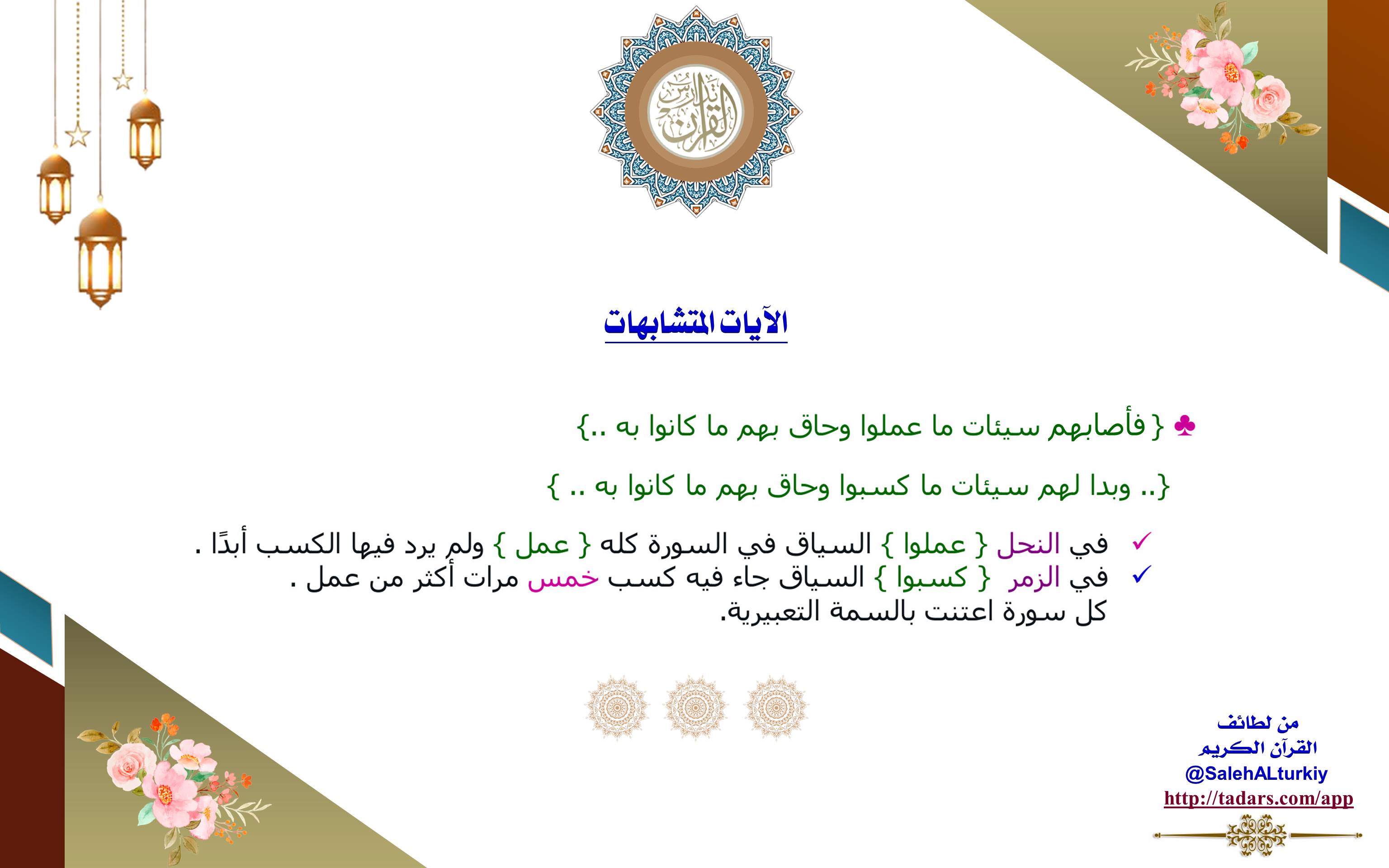 في الزمر {كسبوا} السياق جاء فيه كسب خمس مرات أكثر من عمل.