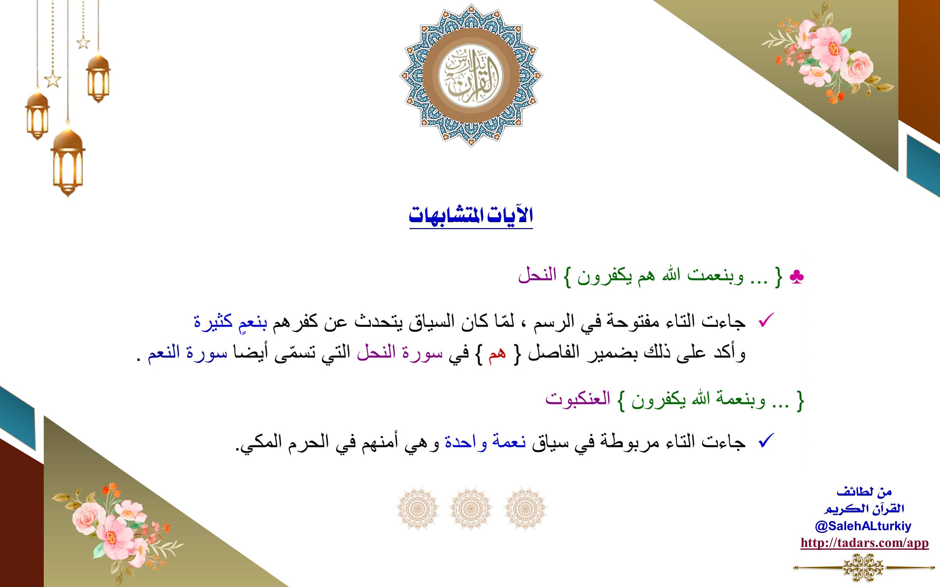 جاءت التاء مفتوحة في الرسم، لمّا كان السياق يتحدث عن كفرهم بنعمٍ كثيرة وأكد على ذلك بضمير الفاصل {هم} في سورة النحل التي تسمّى أيضا سورة النعم.