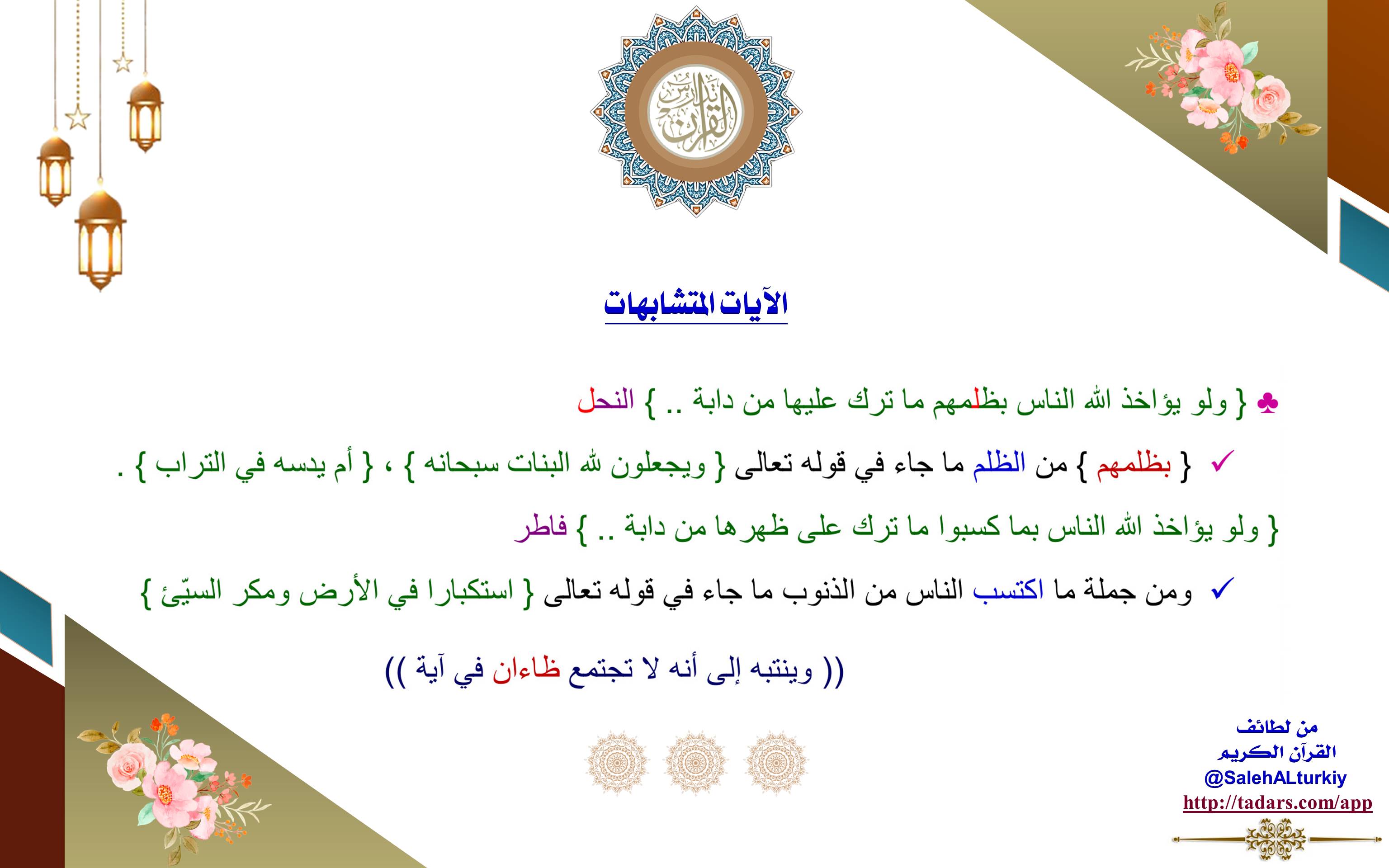 ((وينتبه إلى أنه لا تجتمع ظاءان في آية)).