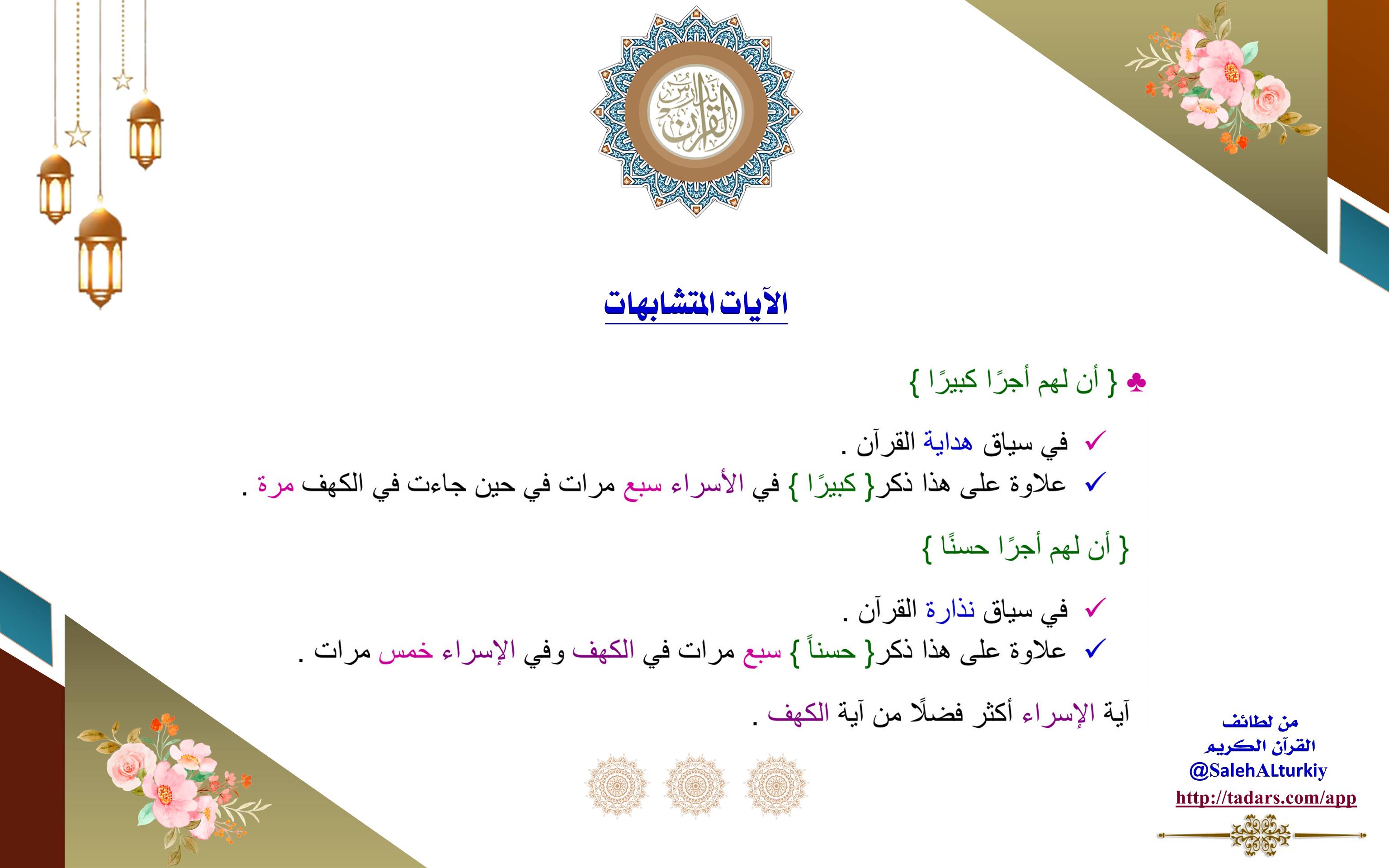 آية الإسراء أكثر فضلاً من آية الكهف.