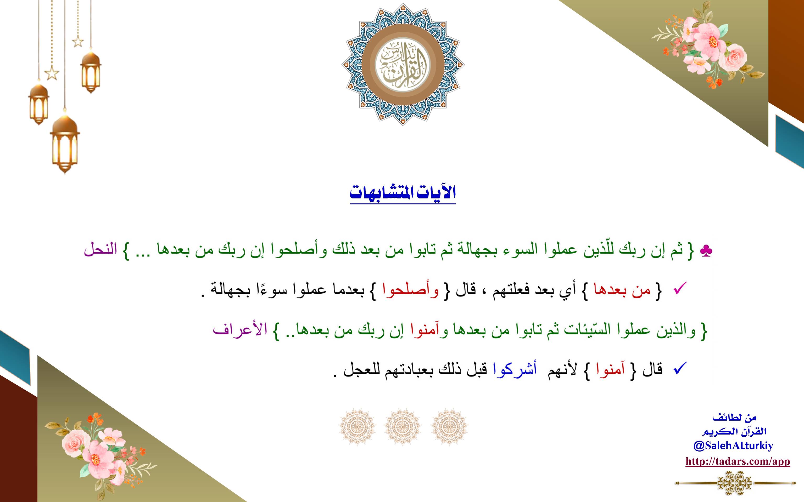 ﴿وَالَّذِينَ عَمِلُوا السَّيِّئَاتِ ثُمَّ تَابُوا مِن بَعْدِهَا وَآمَنُوا إِنَّ رَبَّكَ مِن بَعْدِهَا﴾