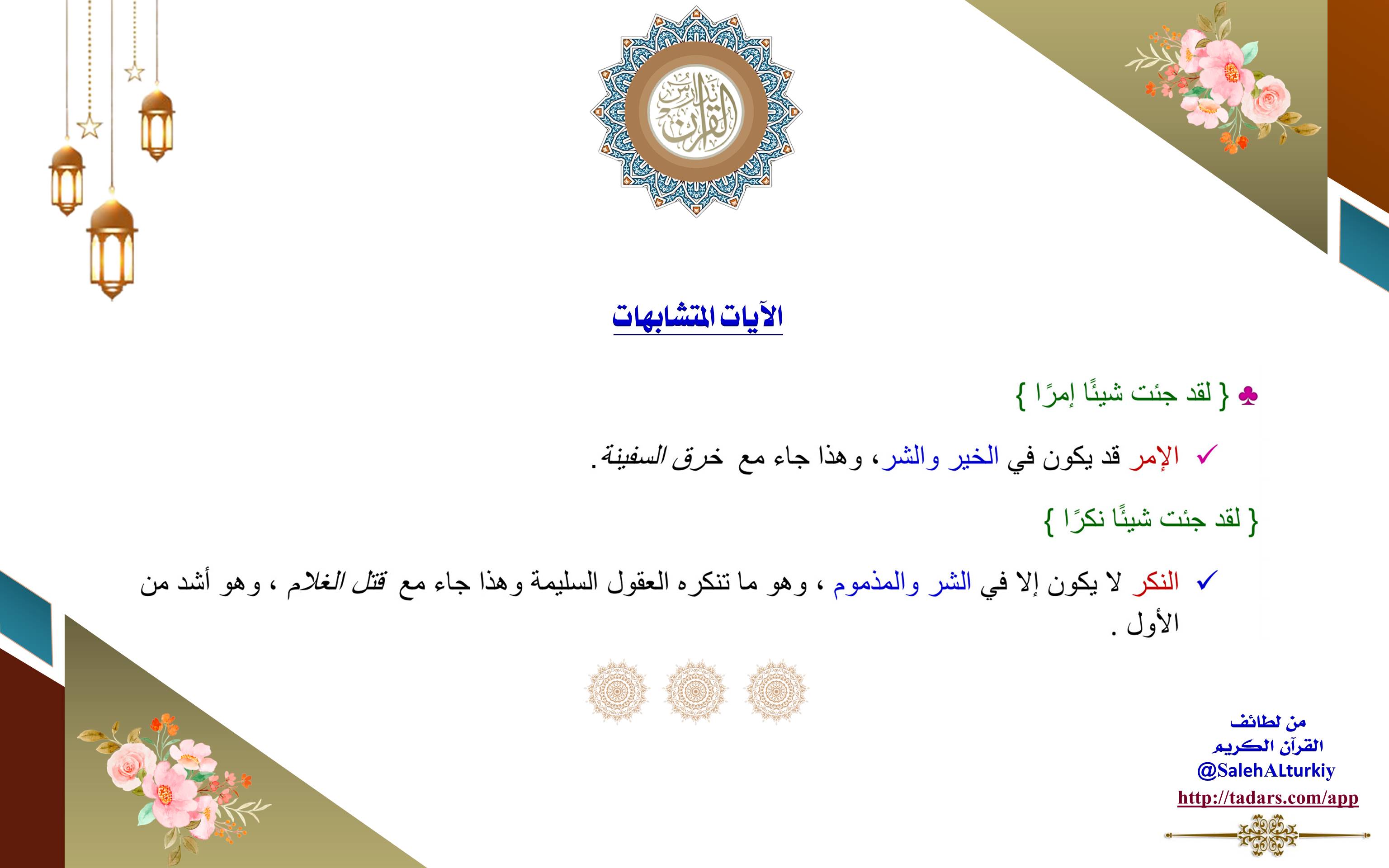 (الإمر) قد يكون في الخير والشر، وهذا جاء مع خرق السفينة.