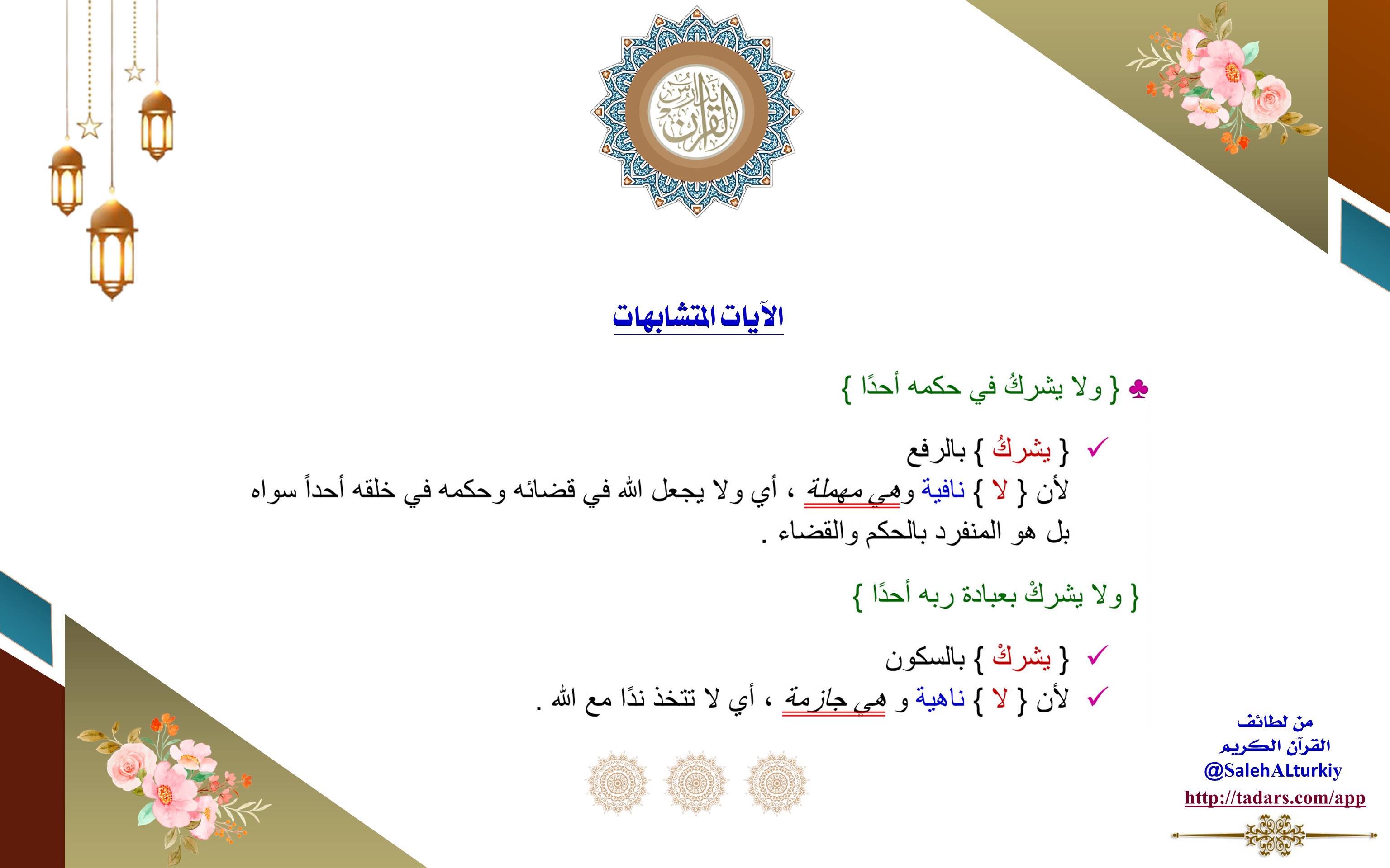 ﴿وَلَا يُشْرِكُ فِي حُكْمِهِ أَحَدًا﴾