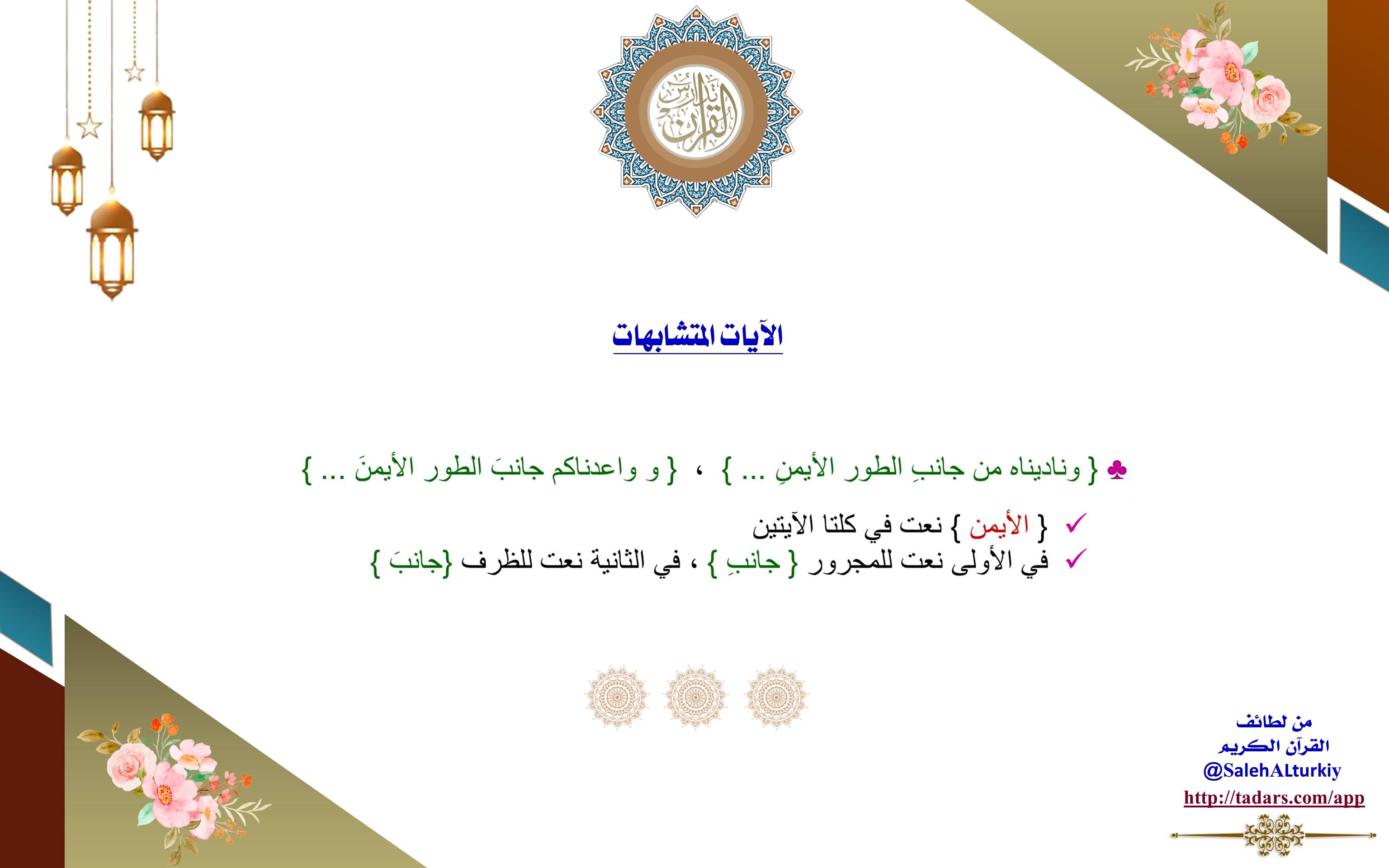 ﴿وَنَادَيْنَاهُ مِن جَانِبِ الطُّورِ الْأَيْمَنِ﴾ ، ﴿وَوَاعَدْنَاكُمْ جَانِبَ الطُّورِ الْأَيْمَنَ﴾