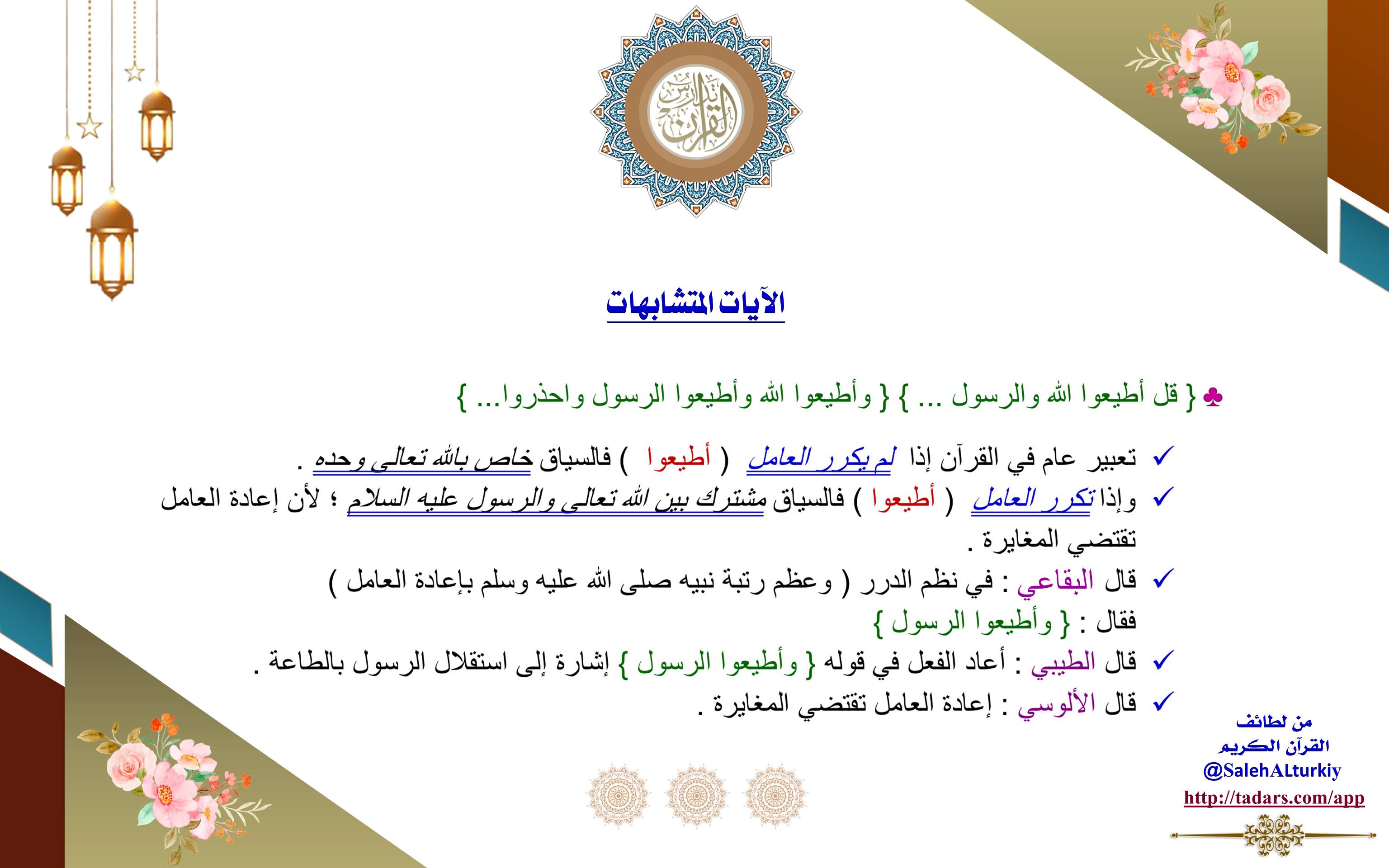 ﴿قُلْ أَطِيعُوا اللَّهَ وَالرَّسُولَ﴾ ، ﴿وَأَطِيعُوا اللَّهَ وَأَطِيعُوا الرَّسُولَ وَاحْذَرُوا﴾