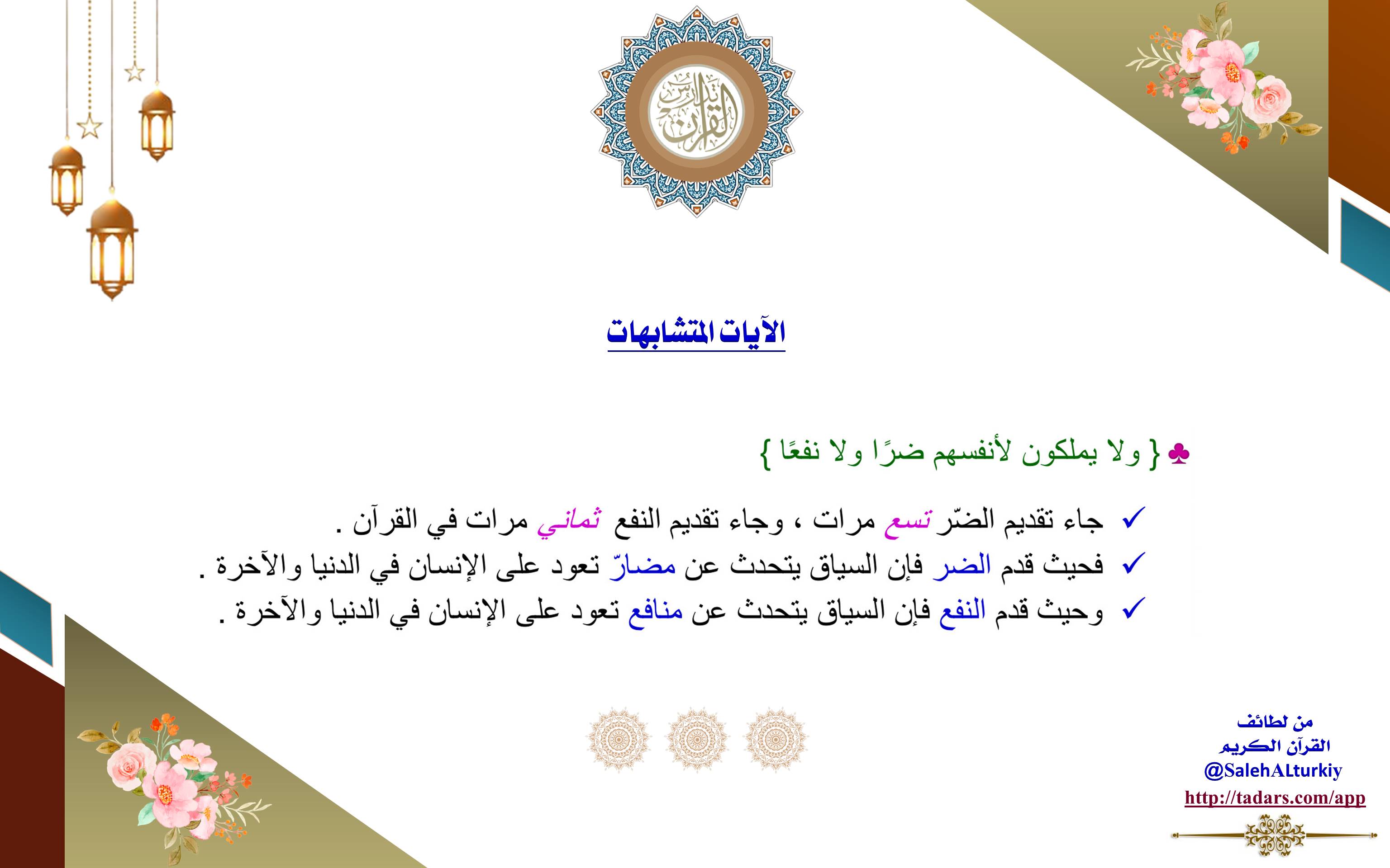 جاء تقديم الضّر تسع مرات، وجاء تقديم النفع ثماني مرات في القرآن.