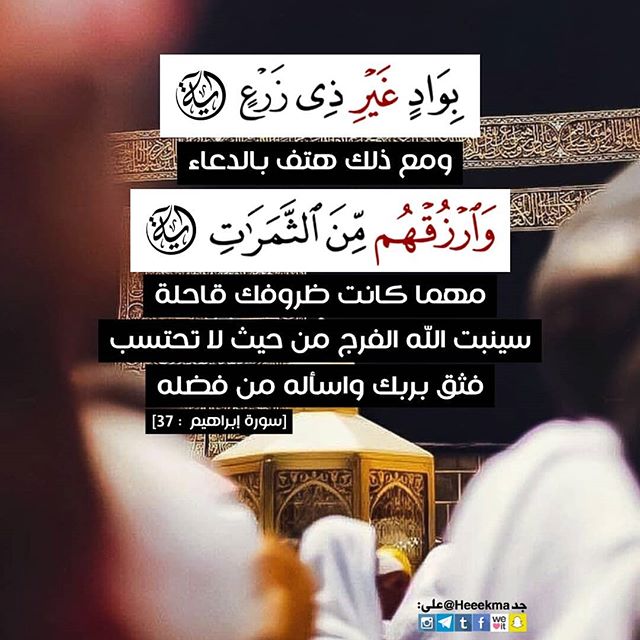 ﴿رَّبَّنَا إِنِّي أَسْكَنتُ مِن ذُرِّيَّتِي بِوَادٍ غَيْرِ ذِي زَرْعٍ عِندَ بَيْتِكَ الْمُحَرَّمِ رَبَّنَا لِيُقِيمُوا الصَّلَاةَ فَاجْعَلْ أَفْئِدَةً مِّنَ النَّاسِ تَهْوِي إِلَيْهِمْ وَارْزُقْهُم مِّنَ الثَّمَرَاتِ لَعَلَّهُمْ يَشْكُرُونَ ﴿٣٧﴾ ﴾