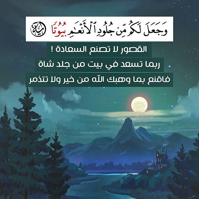 ﴿ وَاللَّهُ جَعَلَ لَكُم مِّن بُيُوتِكُمْ سَكَنًا وَجَعَلَ لَكُم مِّن جُلُودِ الْأَنْعَامِ بُيُوتًا تَسْتَخِفُّونَهَا يَوْمَ ظَعْنِكُمْ وَيَوْمَ إِقَامَتِكُمْ وَمِنْ أَصْوَافِهَا وَأَوْبَارِهَا وَأَشْعَارِهَا أَثَاثًا وَمَتَاعًا إِلَى حِينٍ ﴿٨٠﴾ ﴾