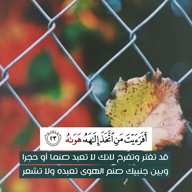 ﴿أَفَرَأَيْتَ مَنِ اتَّخَذَ إِلَهَهُ هَوَاهُ وَأَضَلَّهُ اللَّهُ عَلَى عِلْمٍ وَخَتَمَ عَلَى سَمْعِهِ وَقَلْبِهِ وَجَعَلَ عَلَى بَصَرِهِ غِشَاوَةً فَمَن يَهْدِيهِ مِن بَعْدِ اللَّهِ أَفَلَا تَذَكَّرُونَ ﴿٢٣﴾ ﴾