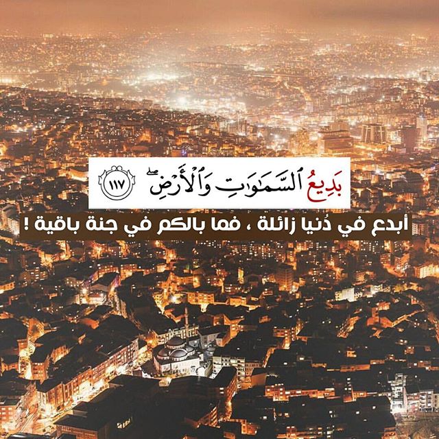 ﴿ بَدِيعُ السَّمَاوَاتِ وَالْأَرْضِ وَإِذَا قَضَى أَمْرًا فَإِنَّمَا يَقُولُ لَهُ كُن فَيَكُونُ ﴿١١٧﴾ ﴾
