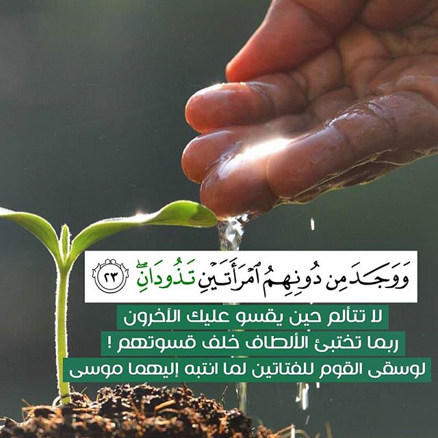 ﴿وَلَمَّا وَرَدَ مَاءَ مَدْيَنَ وَجَدَ عَلَيْهِ أُمَّةً مِّنَ النَّاسِ يَسْقُونَ وَوَجَدَ مِن دُونِهِمُ امْرَأَتَيْنِ تَذُودَانِ قَالَ مَا خَطْبُكُمَا قَالَتَا لَا نَسْقِي حَتَّى يُصْدِرَ الرِّعَاءُ وَأَبُونَا شَيْخٌ كَبِيرٌ ﴿٢٣﴾ ﴾