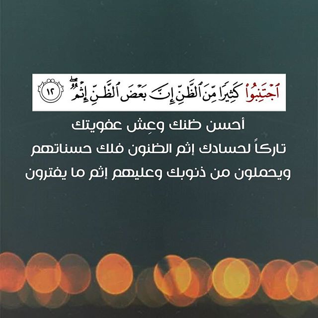 ﴿يَا أَيُّهَا الَّذِينَ آمَنُوا اجْتَنِبُوا كَثِيرًا مِّنَ الظَّنِّ إِنَّ بَعْضَ الظَّنِّ إِثْمٌ وَلَا تَجَسَّسُوا وَلَا يَغْتَب بَّعْضُكُم بَعْضًا أَيُحِبُّ أَحَدُكُمْ أَن يَأْكُلَ لَحْمَ أَخِيهِ مَيْتًا فَكَرِهْتُمُوهُ وَاتَّقُوا اللَّهَ إِنَّ اللَّهَ تَوَّابٌ رَّحِيمٌ ﴿١٢﴾ ﴾