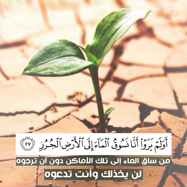 ﴿ أَوَلَمْ يَرَوْا أَنَّا نَسُوقُ الْمَاءَ إِلَى الْأَرْضِ الْجُرُزِ فَنُخْرِجُ بِهِ زَرْعًا تَأْكُلُ مِنْهُ أَنْعَامُهُمْ وَأَنفُسُهُمْ أَفَلَا يُبْصِرُونَ ﴿٢٧﴾ ﴾