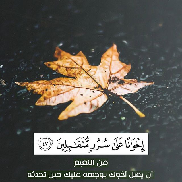( إِخْوَانًا عَلَى سُرُرٍ مُتَقَابِلِين ). منَ النعيمِ ... أن يُقبلَ أخوك بوجهه عليك حينَ تُحدّثُه.