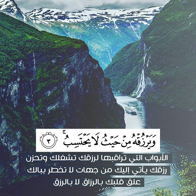 ﴿ وَيَرْزُقْهُ مِنْ حَيْثُ لَا يَحْتَسِبُ وَمَن يَتَوَكَّلْ عَلَى اللَّهِ فَهُوَ حَسْبُهُ إِنَّ اللَّهَ بَالِغُ أَمْرِهِ قَدْ جَعَلَ اللَّهُ لِكُلِّ شَيْءٍ قَدْرًا ﴿٣﴾ ﴾