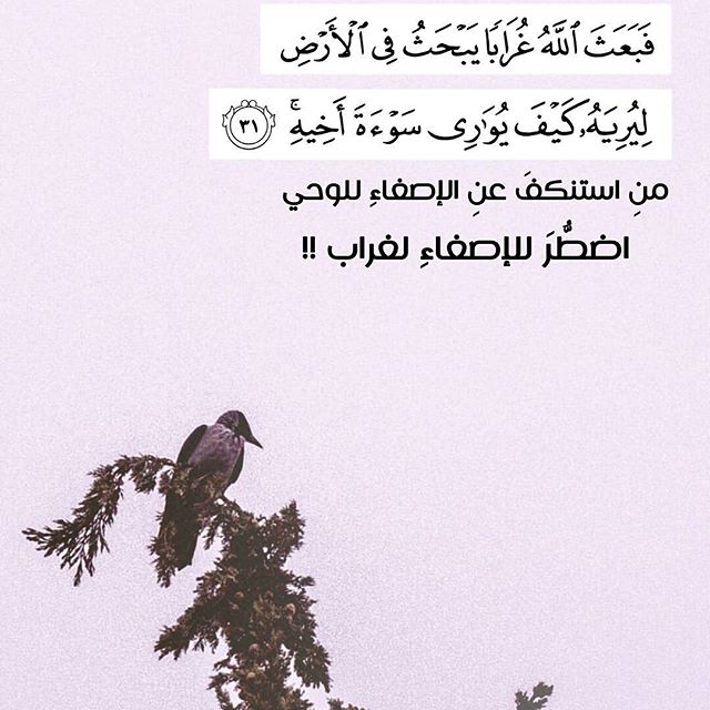 ( فبعثَ اللهُ غرابًا يبحثُ في الأرضِ ليُريَه كيف يواري سوءة أخيه ). منِ استنكفَ عنِ الإصغاءِ للوحي.... اضطُّرَ للإصغاءِ لغراب