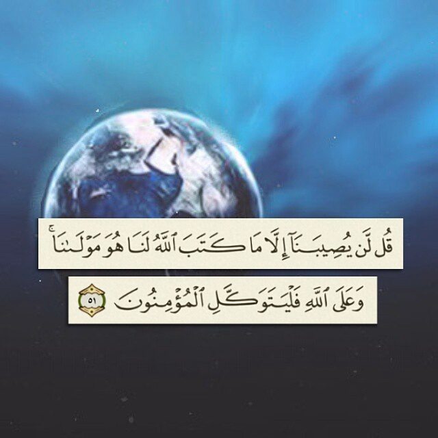 ﴿قُل لَّن يُصِيبَنَا إِلَّا مَا كَتَبَ اللَّهُ لَنَا هُوَ مَوْلَانَا وَعَلَى اللَّهِ فَلْيَتَوَكَّلِ الْمُؤْمِنُونَ ﴿٥١﴾ ﴾