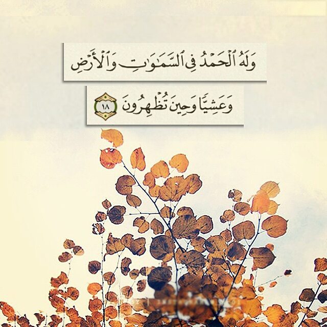 ﴿ وَلَهُ الْحَمْدُ فِي السَّمَاوَاتِ وَالْأَرْضِ وَعَشِيًّا وَحِينَ تُظْهِرُونَ ﴿١٨﴾ ﴾