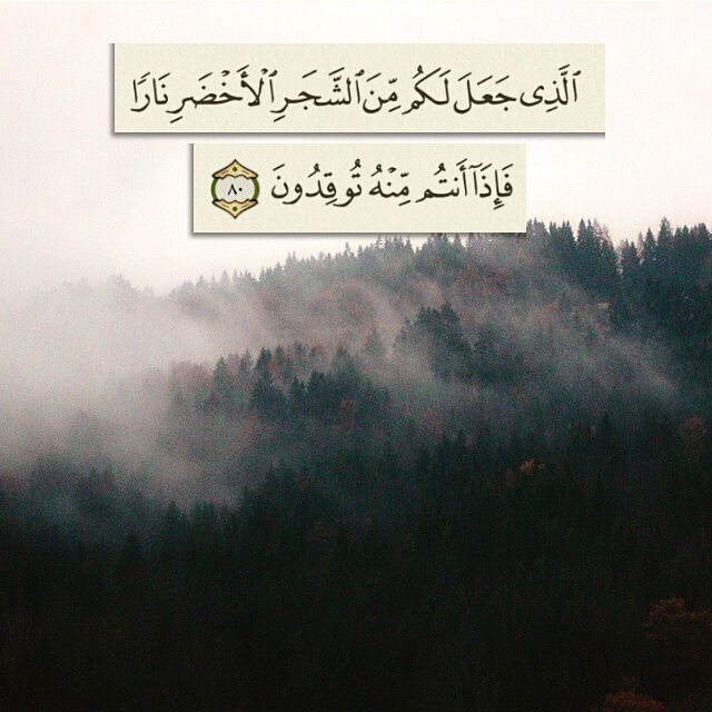 ﴿الَّذِي جَعَلَ لَكُم مِّنَ الشَّجَرِ الْأَخْضَرِ نَارًا فَإِذَا أَنتُم مِّنْهُ تُوقِدُونَ ﴿٨٠﴾ ﴾