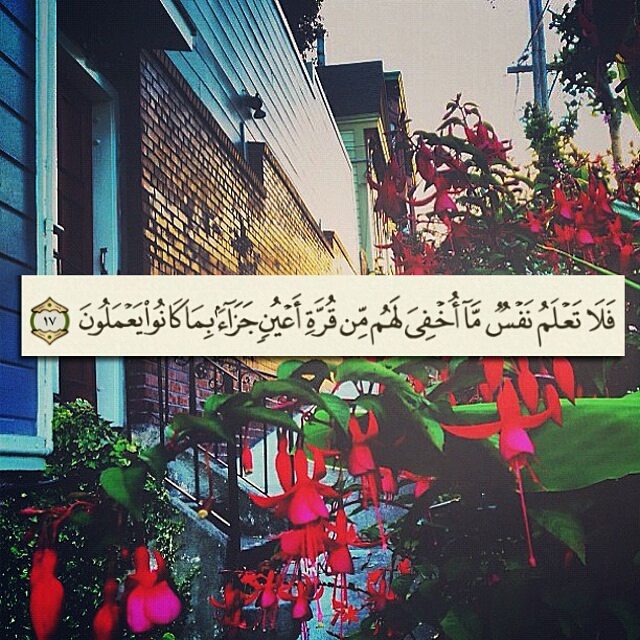 ﴿فَلَا تَعْلَمُ نَفْسٌ مَّا أُخْفِيَ لَهُم مِّن قُرَّةِ أَعْيُنٍ جَزَاءً بِمَا كَانُوا يَعْمَلُونَ ﴿١٧﴾ ﴾