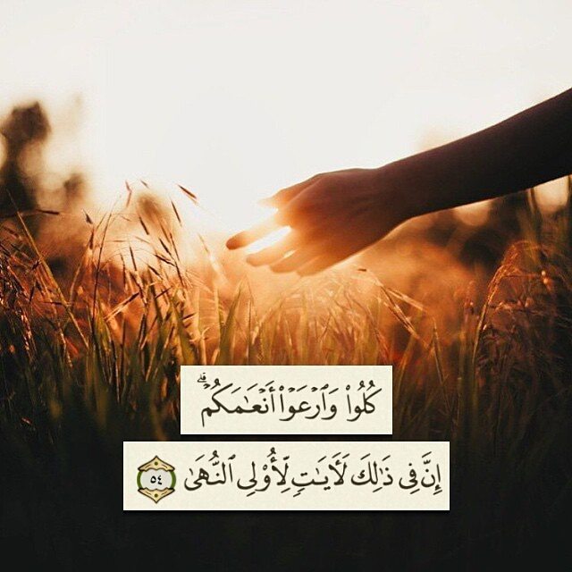﴿كُلُوا وَارْعَوْا أَنْعَامَكُمْ إِنَّ فِي ذَلِكَ لَآيَاتٍ لِّأُولِي النُّهَى ﴿٥٤﴾ ﴾
