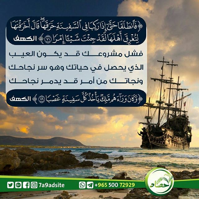 ﴿ أَمَّا السَّفِينَةُ فَكَانَتْ لِمَسَاكِينَ يَعْمَلُونَ فِي الْبَحْرِ فَأَرَدتُّ أَنْ أَعِيبَهَا وَكَانَ وَرَاءَهُم مَّلِكٌ يَأْخُذُ كُلَّ سَفِينَةٍ غَصْبًا ﴿٧٩﴾ ﴾
