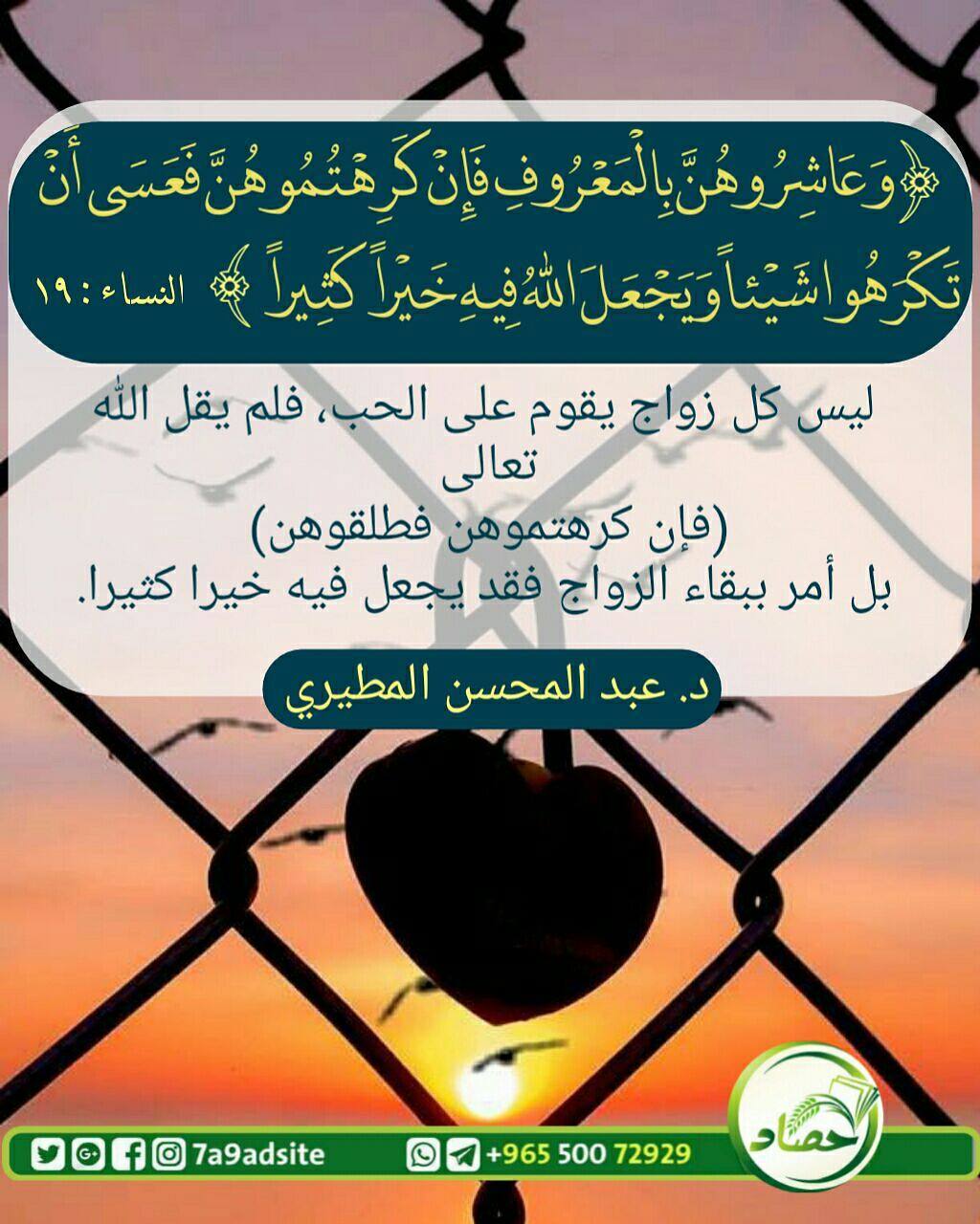ليس كل زواج يقوم علي الحب فلم يقل الله تعالي فإن كرهتموهن فطلقوهن بل امر ببقاء الزواج فقد يجعل فيه خيرا كثيرا