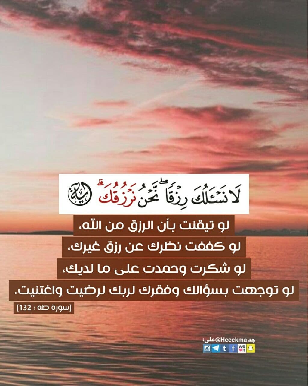 لو تيقنت بأن الرزق من الله لكففت نظرك عن رزق غيرك، وحمدت على ما لديك ولتوجهت بسؤالك وفقرك لربك.