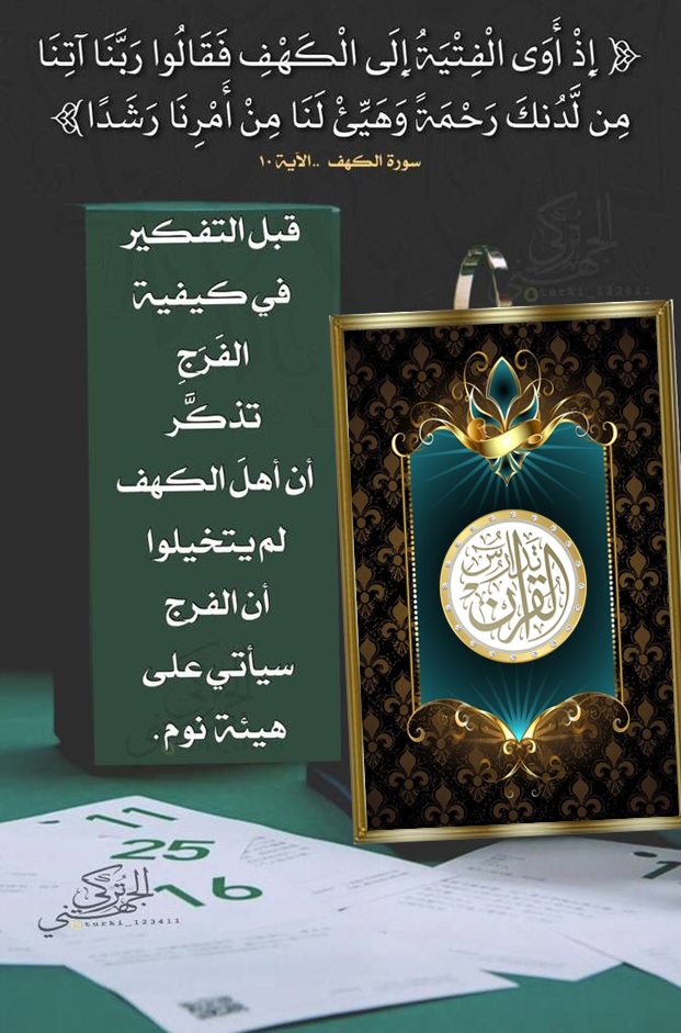 ﴿إِذْ أَوَى الْفِتْيَةُ إِلَى الْكَهْفِ فَقَالُوا رَبَّنَا آتِنَا مِن لَّدُنكَ رَحْمَةً وَهَيِّئْ لَنَا مِنْ أَمْرِنَا رَشَدًا﴾
