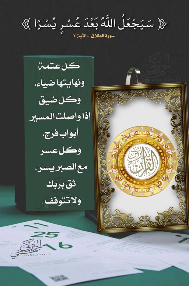 كل عتمة ونهايتها ضياء، وكل ضيق إذا واصلت المسير أبواب فرج، وكل عسر مع الصبر يسر، ثق بربك ولا تتوقف.