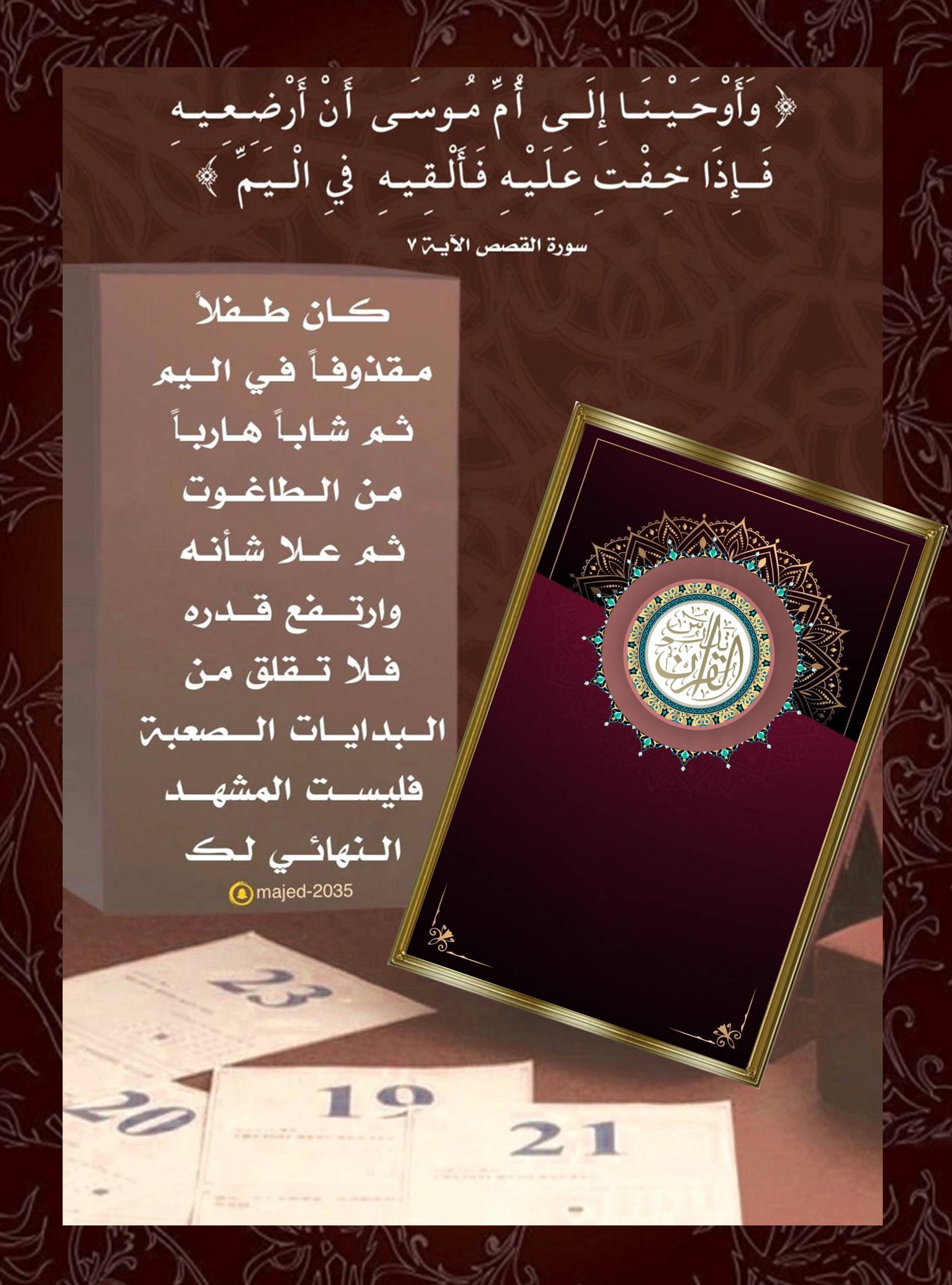 كان طفلاً مقذوفاً في اليم، ثم شاباً هارباً من الطاغوت، ثم علا شأنه وارتفع قدره، فلا تقلق من البدايات الصعبة فليست المشهد النهائي لك.