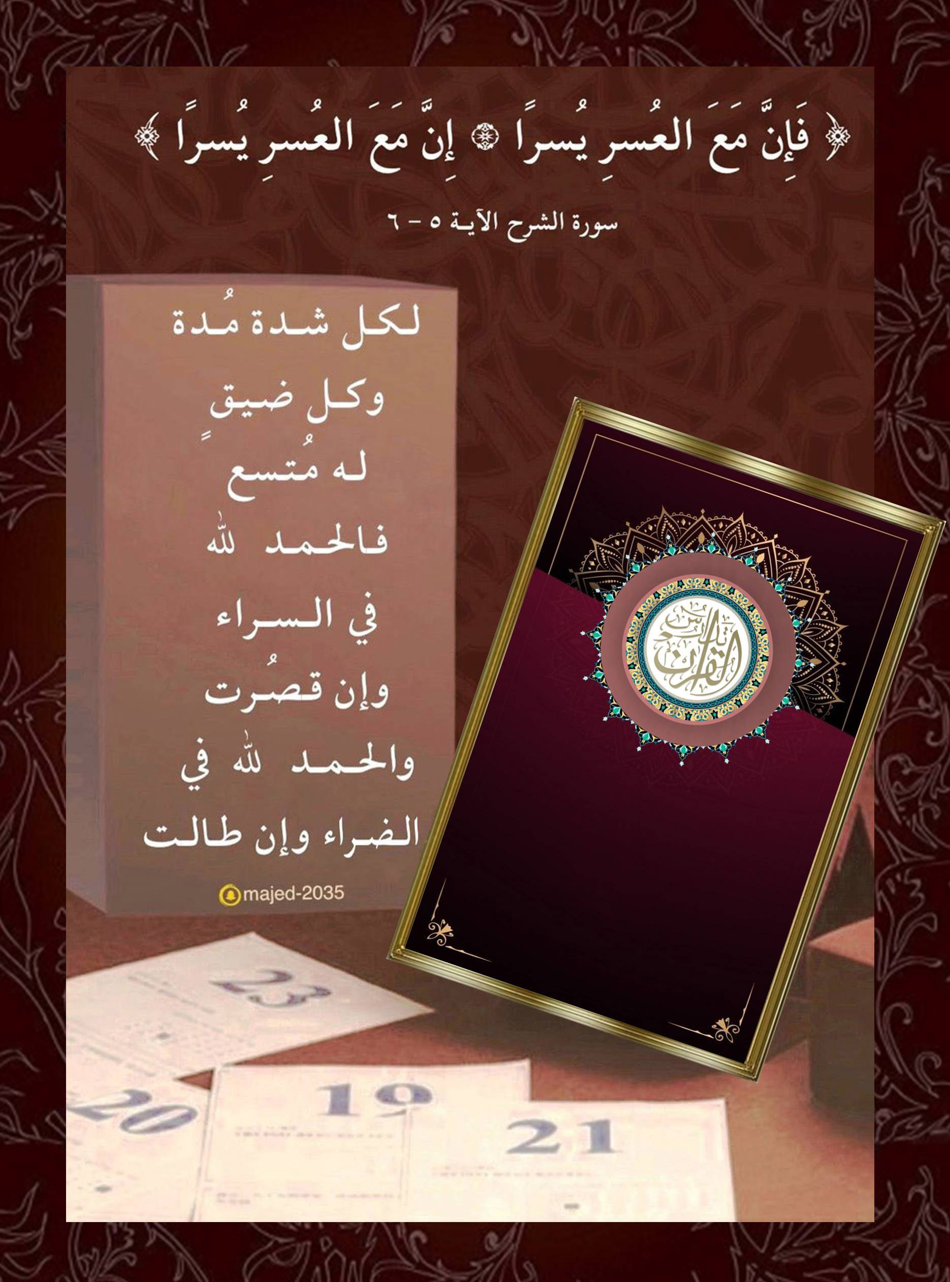﴿فَإِنَّ مَعَ الْعُسْرِ يُسْرًا • إِنَّ مَعَ الْعُسْرِ يُسْرًا﴾