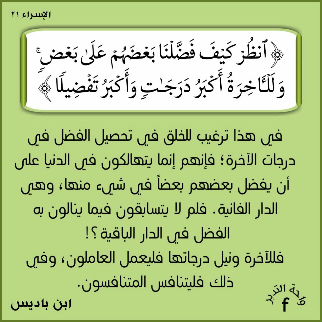 ﴿انظُرْ كَيْفَ فَضَّلْنَا بَعْضَهُمْ عَلَى بَعْضٍ وَلَلْآخِرَةُ أَكْبَرُ دَرَجَاتٍ وَأَكْبَرُ تَفْضِيلًا﴾: