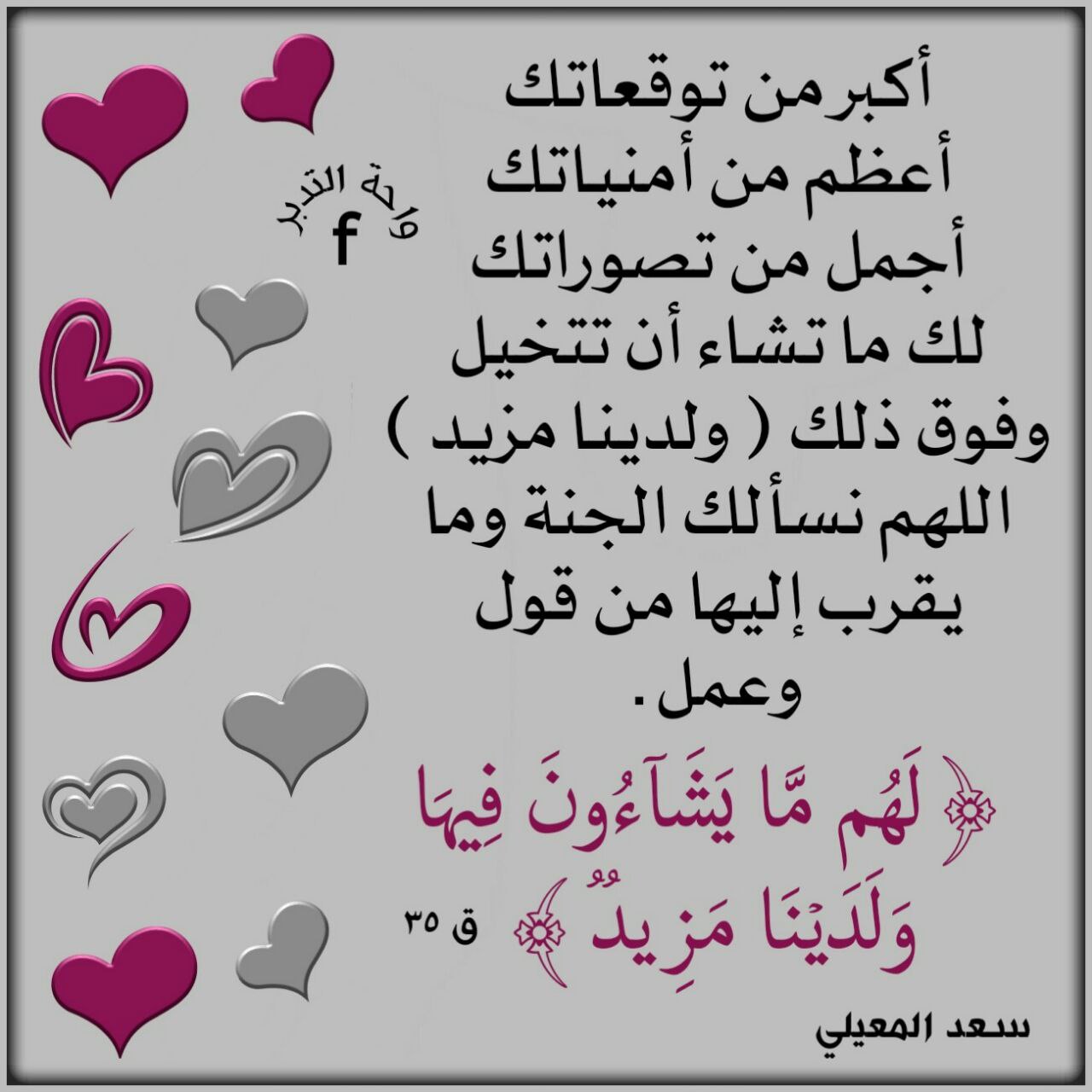 أكبر من توقعاتك أعظم من أمنياتك أجمل من تصوراتك لك ما تشاء أن تتخيل وفوق ذلك (ولدينا مزيد) اللهم نسألك الجنة وما يقرب إليها من قول وعمل.