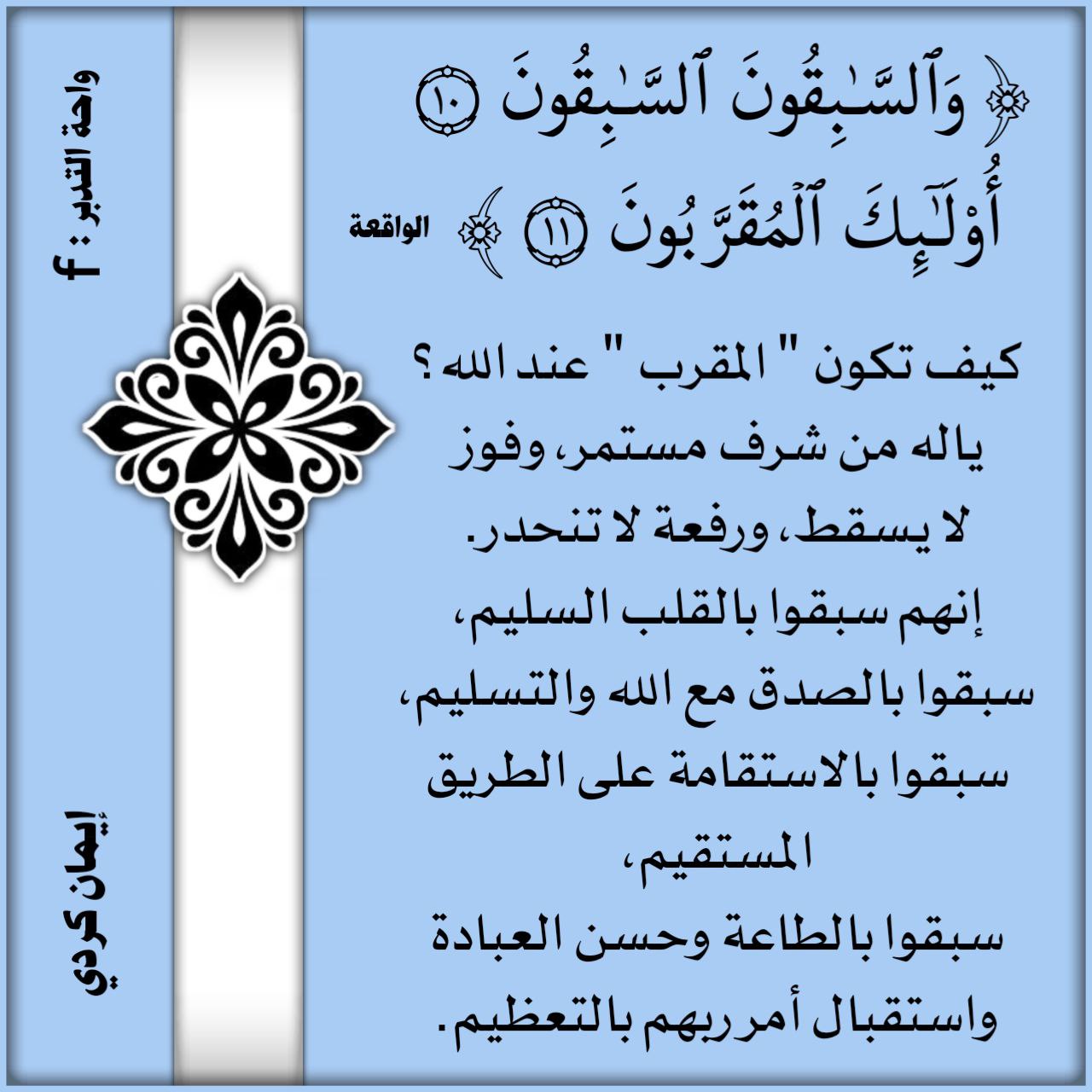 كيف تكون "المقرب" عند الله؟ يا له من شرف مستمر، وفوز لا يسقط، ورفعة لا تنحدر. إنهم سبقوا بالقلب السليم، سبقوا بالصدق مع الله والتسليم، سبقوا بالاستقامة على الطريق المستقيم، سبقوا بالطاعة وحسن العبادة واستقبال أمر ربهم بالتعظيم.