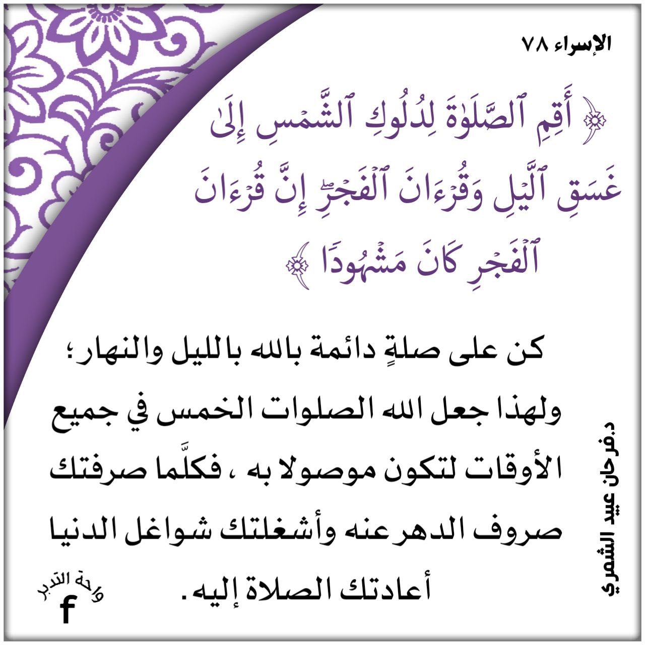 ﴿أَقِمِ الصَّلَاةَ لِدُلُوكِ الشَّمْسِ إِلَى غَسَقِ اللَّيْلِ وَقُرْآنَ الْفَجْرِ إِنَّ قُرْآنَ الْفَجْرِ كَانَ مَشْهُودًا﴾