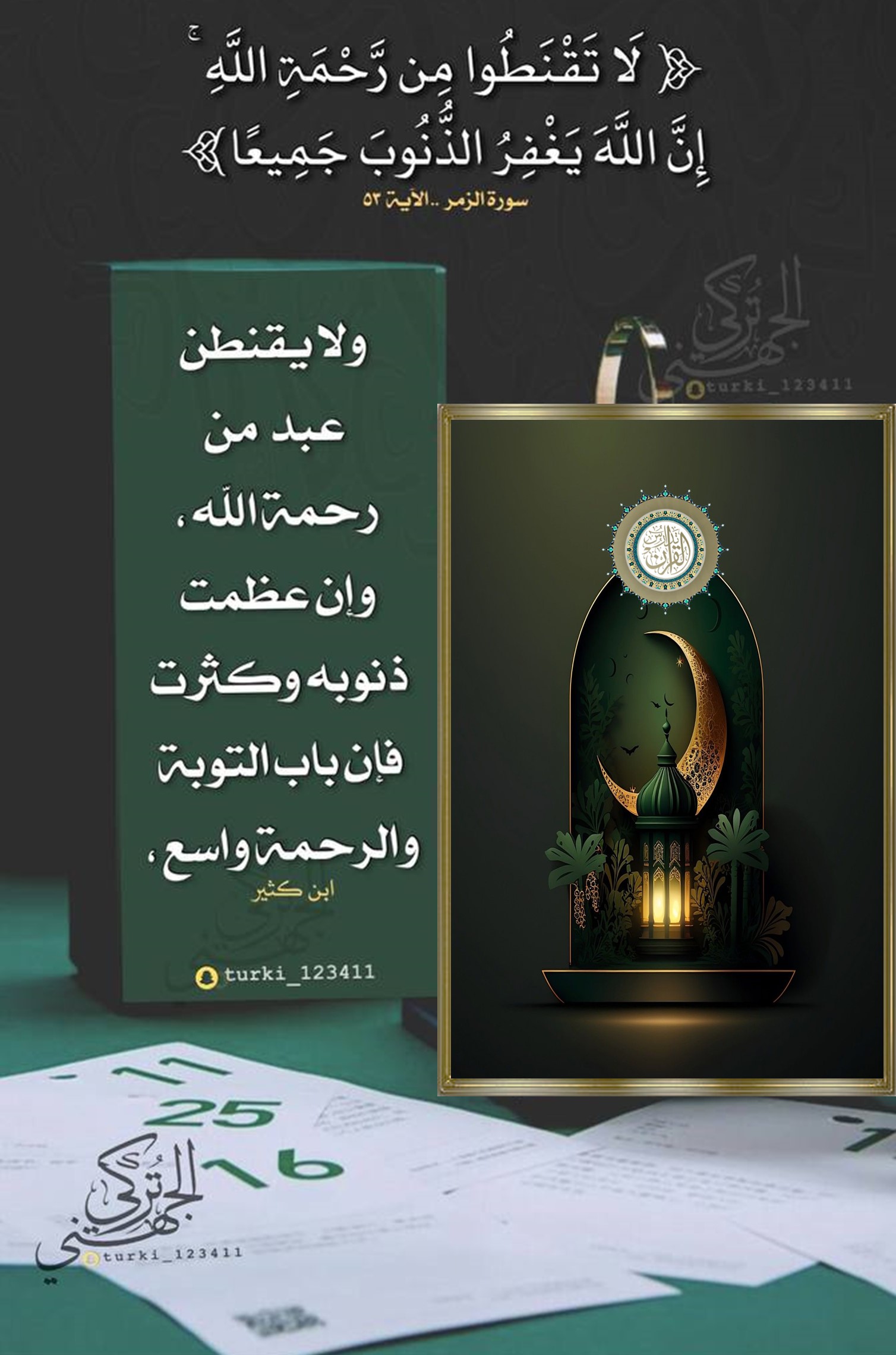 ﴿لَا تَقْنَطُوا مِن رَّحْمَةِ اللَّهِ إِنَّ اللَّهَ يَغْفِرُ الذُّنُوبَ جَمِيعًا﴾: