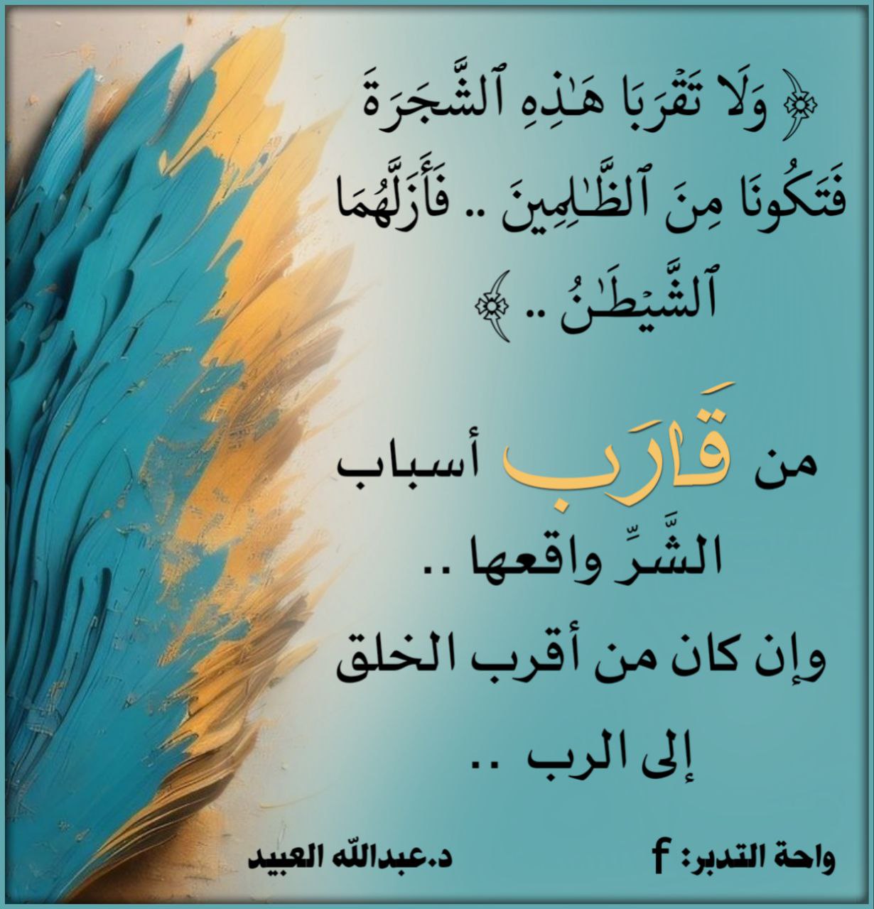 من (قَارَب) أسباب الشَّرَّ واقعها .. وإن كان من أقرب الخلق إلى الرب.