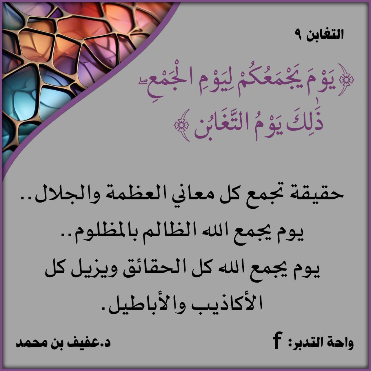 ﴿يَوْمَ يَجْمَعُكُمْ لِيَوْمِ الْجَمْعِ ذَلِكَ يَوْمُ التَّغَابُنِ﴾