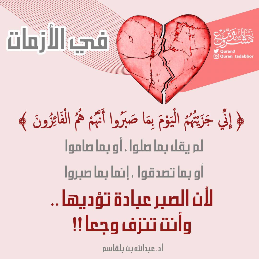 لم يقل بما صلوا، أو بما صاموا .. أو بما تصدقوا، إنما بما صبروا؛ لأن الصبر عبادة تؤديها .. وأنت تنزف وجعًا !!