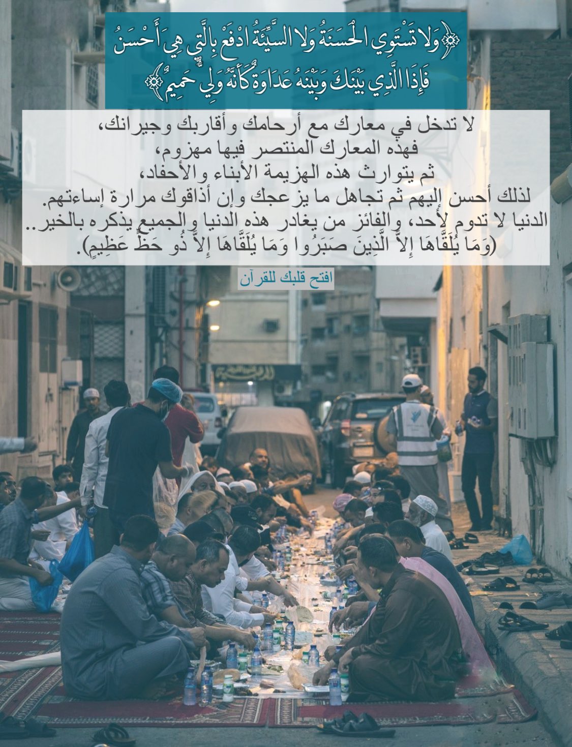 لا تدخل في معارك مع أرحامك وأقاربك وجيرانك، فهذه المعارك المنتصر فيها مهزوم، ثم يتوارث هذه الهزيمة الأبناء والأحفاد، لذلك أحسن إليهم ثم تجاهل ما يزعجك وإن أذاقوك مرارة إساءتهم. الدنيا لا تدوم لأحد، والفائز من يغادر هذه الدنيا والجميع يذكره بالخير (وَمَا يُلَقَّاهَا إِلَّا الَّذِينَ صَبَرُوا وَمَا يُلَقَّاهَا إِلَّا ذُو حَظٍّ عَظِيمٍ).