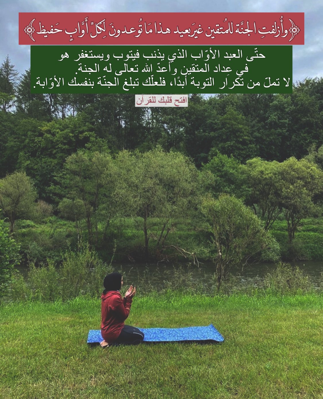 ﴿وَأُزْلِفَتِ الْجَنَّةُ لِلْمُتَّقِينَ غَيْرَ بَعِيدٍ • هَذَا مَا تُوعَدُونَ لِكُلِّ أَوَّابٍ حَفِيظٍ﴾