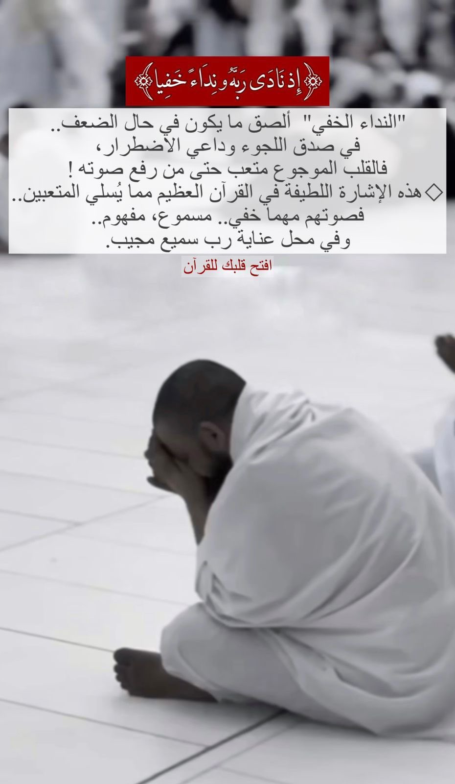 "النداء الخفي" ألصق ما يكون في حال الضعف .. في صدق اللجوء وداعى الاضطرار، فالقلب الموجوع متعب حتى من رفع صوته!