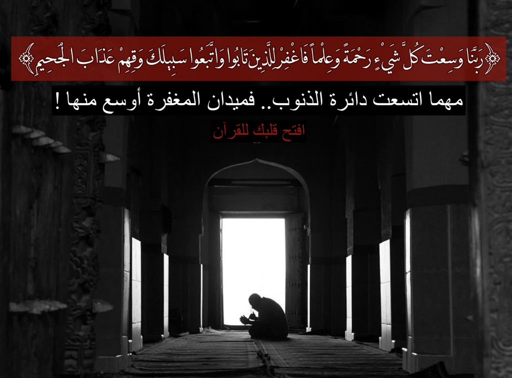 ﴿رَبَّنَا وَسِعْتَ كُلَّ شَيْءٍ رَّحْمَةً وَعِلْمًا فَاغْفِرْ لِلَّذِينَ تَابُوا وَاتَّبَعُوا سَبِيلَكَ وَقِهِمْ عَذَابَ الْجَحِيمِ﴾