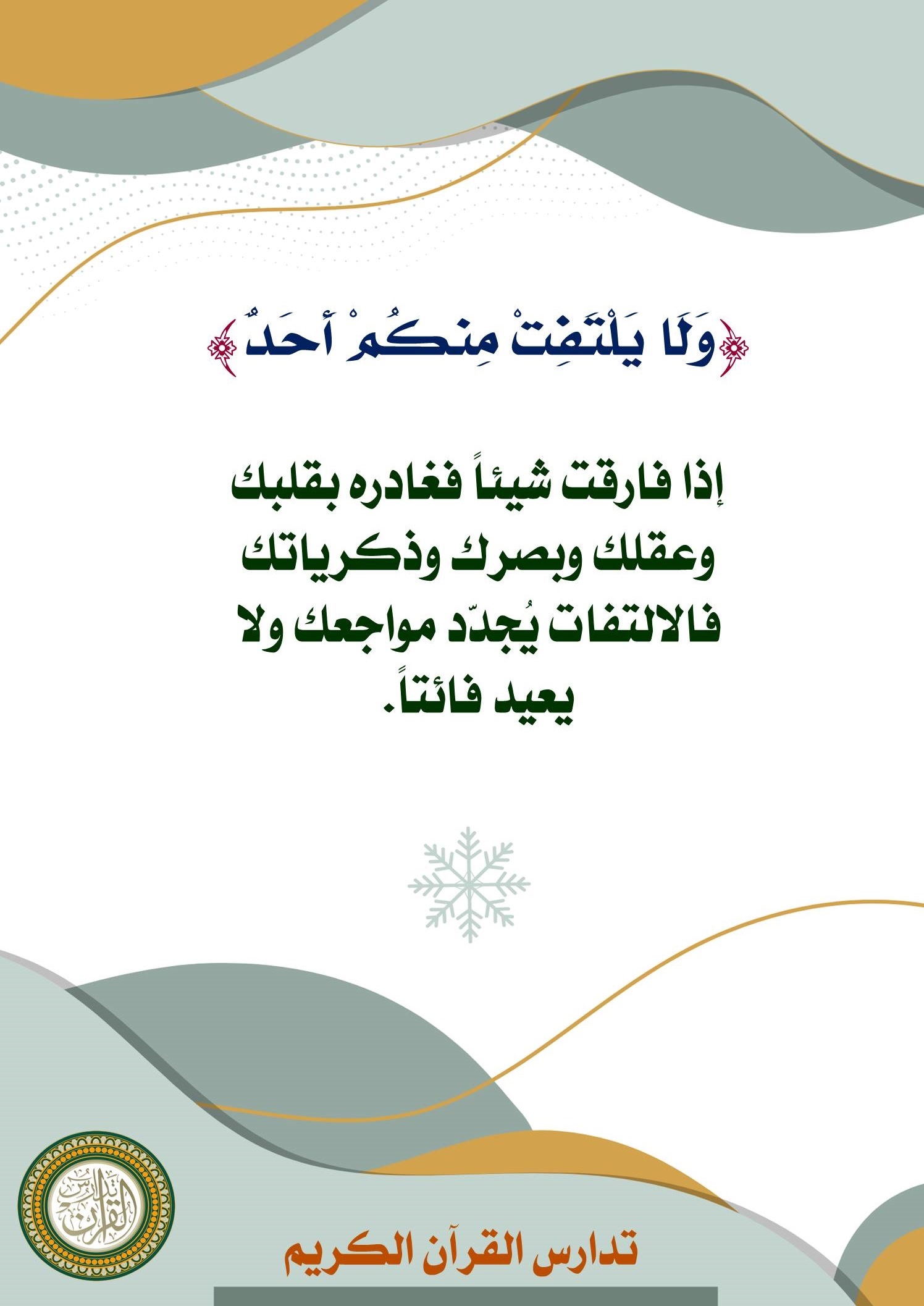 إذا فارقت شيئاً فغادره بقلبك وعقلك وبصرك وذكرياتك، فالالتفات يُجدّد مواجعك ولا يعيد فائتاً.