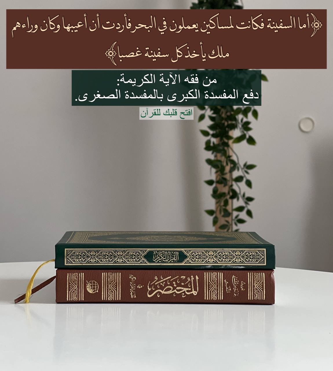 ﴿أَمَّا السَّفِينَةُ فَكَانَتْ لِمَسَاكِينَ يَعْمَلُونَ فِي الْبَحْرِ فَأَرَدتُّ أَنْ أَعِيبَهَا وَكَانَ وَرَاءَهُم مَّلِكٌ يَأْخُذُ كُلَّ سَفِينَةٍ غَصْبًا﴾