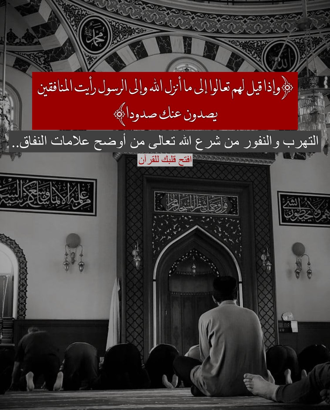 ﴿وَإِذَا قِيلَ لَهُمْ تَعَالَوْا إِلَى مَا أَنزَلَ اللَّهُ وَإِلَى الرَّسُولِ رَأَيْتَ الْمُنَافِقِينَ يَصُدُّونَ عَنكَ صُدُودًا﴾
