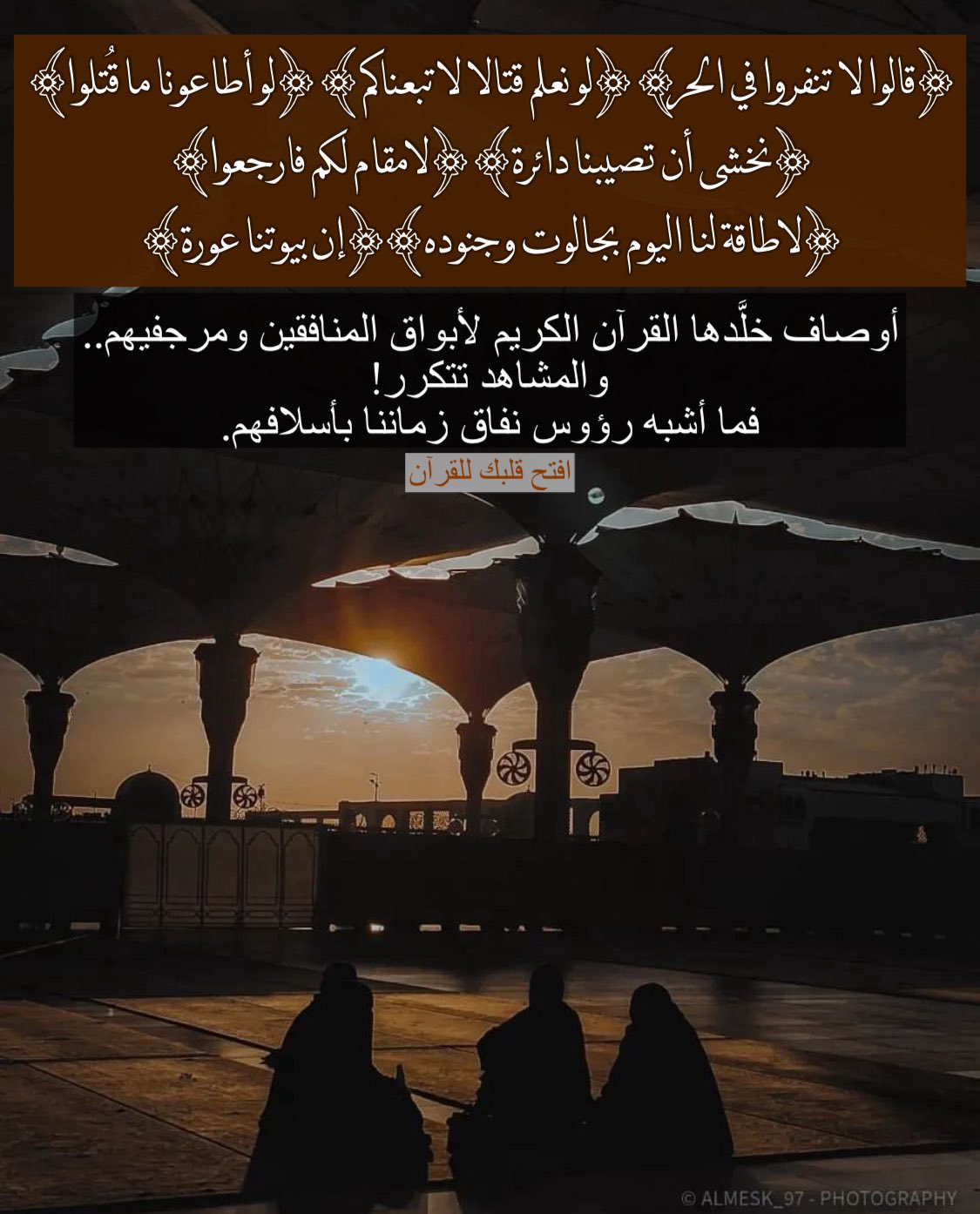 أوصاف خلَّدها القرآن الكريم لأبواق المنافقين ومرجفيهم .. والمشاهد تتكرر! فما أشبه رؤوس نفاق زماننا بأسلافهم.