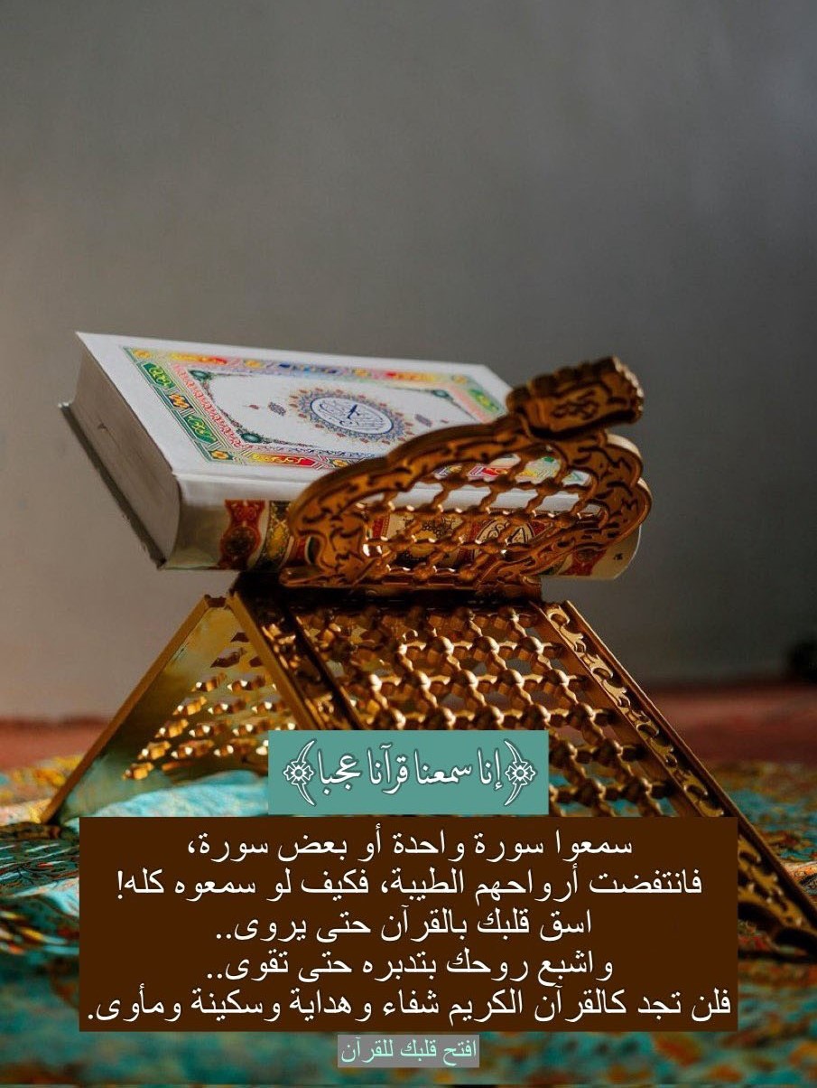 سمعوا سورة واحدة أو بعض سورة، فانتفضت أرواحهم الطيبة، فكيف لو سمعوه كله! اسق قلبك بالقرآن حتى يروى .. واشبع روحك بتدبره حتى تقوى .. فلن تجد كالقرآن الكريم شفاء وهداية وسكينة ومأوى.